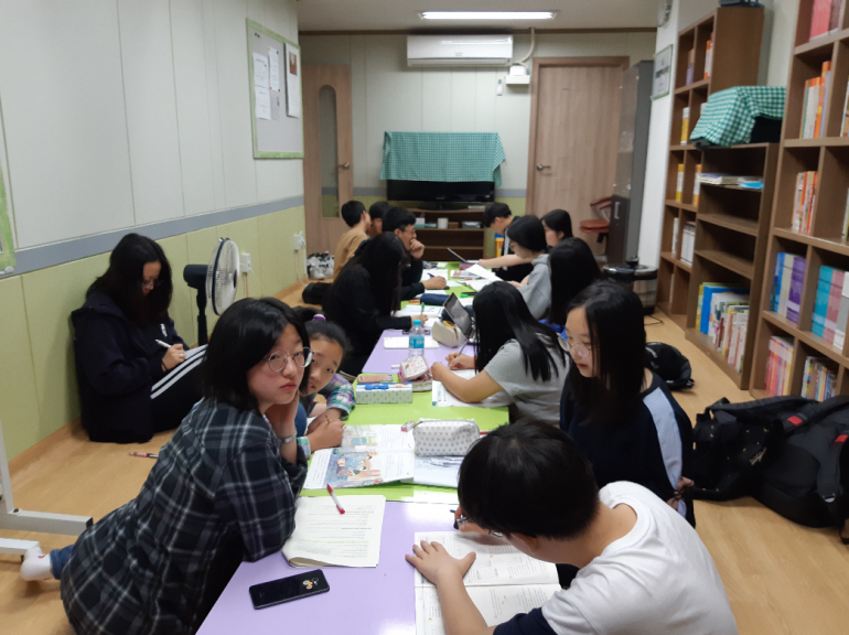 북한민주화청년학생포럼(대표 : 박광일)은 2018년 9월, 서울특별시 송파구 거여동에 거주하고 있는 북한이탈주민 청소년 방과후 공부방인 '통일꿈나무공부방'에서 자원봉사활동을 진행했습니다. '통일꿈나무공부방' 자원봉사는 본 단체 소속인 대원외국어고등학교 동아리 투포원 학생들과 보인고등학교, 서울국제학교 봉사동아리 학생들이 북한이탈주민 청소년들을 대상으로 1대1 멘터링자원봉사를 진행하였습니다.