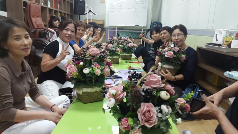 남북하나재단(이사장 : 손광주)이 지원하고 북한민주화청년학생포럼(대표 : 박광일)이 주최한 북한이탈주민 사회정착을 위한 평생학습교실인 '착한동네' 프로그램으로 진행되는 '문화교실' 3회 강의가 2016년 6월 19일(일요일), 서울특별시 송파구 거여동 소재 아름다운꿈의교회에서 진행되었습니다. '문화교실' 3강의는 송은희 리본아트 강사님과 북한이탈주민들이 함께 하는 꽃꽃이 만들기 교육이 진행되었습니다. 이번 문화교실 3강의에는 서울특별시 송파구 거여동 거주 북한이탈주민 20여명이 참가하여 꽃꽃이를 만들어보는 귀한 시간을 가졌습니다.