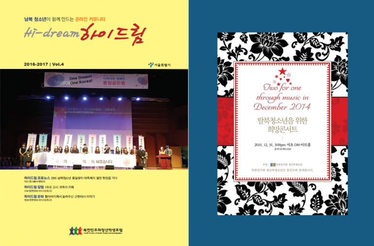 북한민주화청년학생포럼(대표 : 박광일)은 서울특별시가 지원하는 2016 비영리민간단체 공익지원사업으로 남,북 청소년들이 함께 만드는 하이드림 잡지 2016년 제4호를 발간하게 되었습니다.