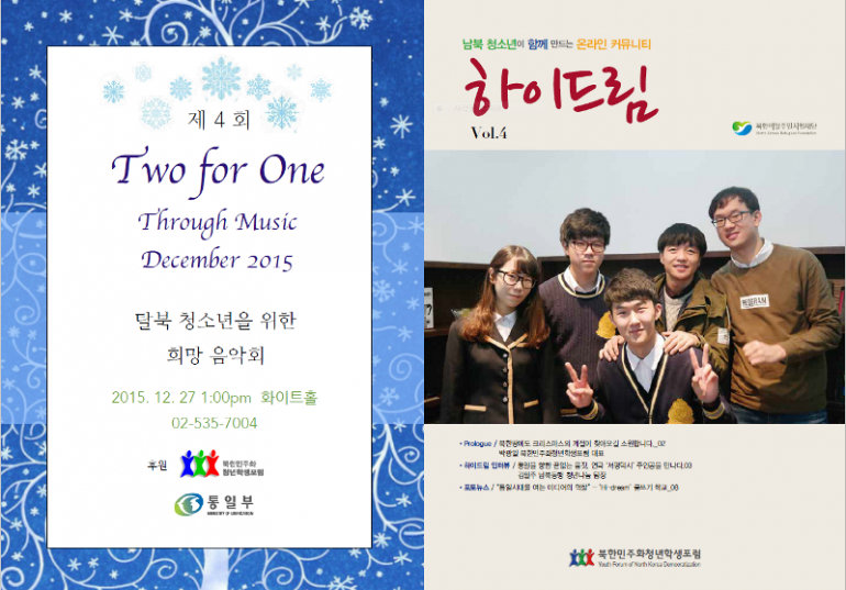 북한민주화청년학생포럼(대표 : 박광일)은 미래 행복한 통일시대의 주인공들인 우리 청소년들에게 통일에 대한 새로운 비전을 심어주기 위하여 하이드림 청소년 기자단 활동으로 잡지 제3호를 발간하게 되었습니다.