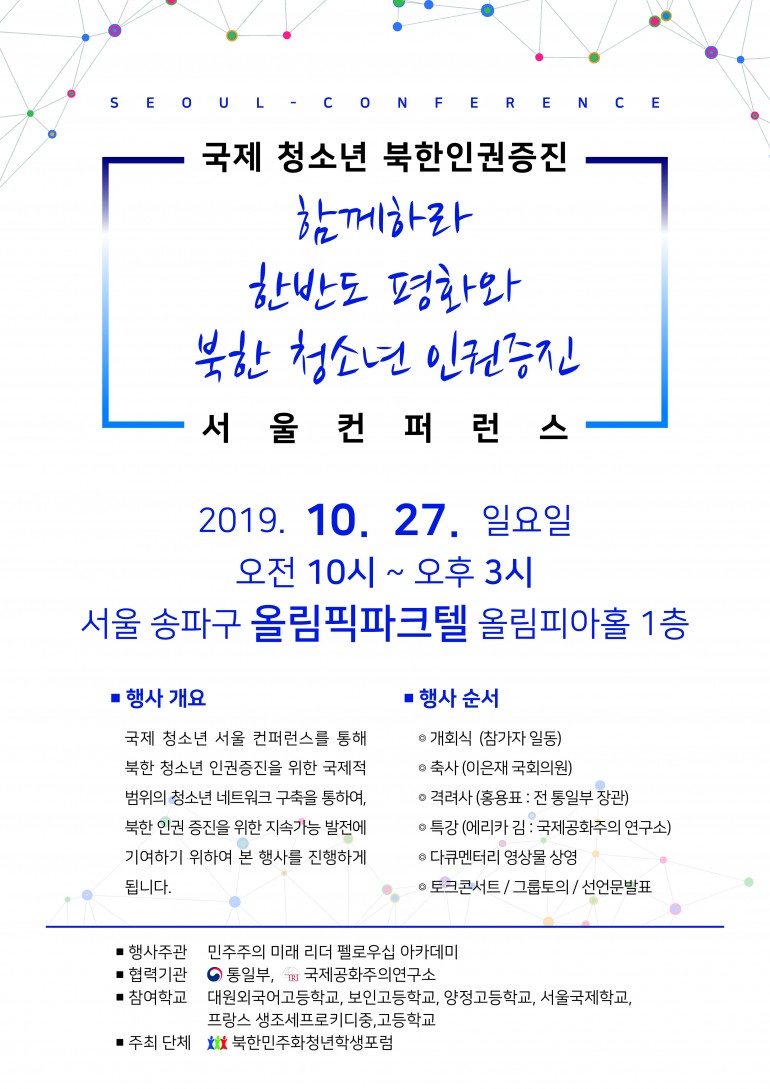한반도 평화와 북한 청소년 인권 증진을 위한 국제 청소년 서울 건퍼런스 공지