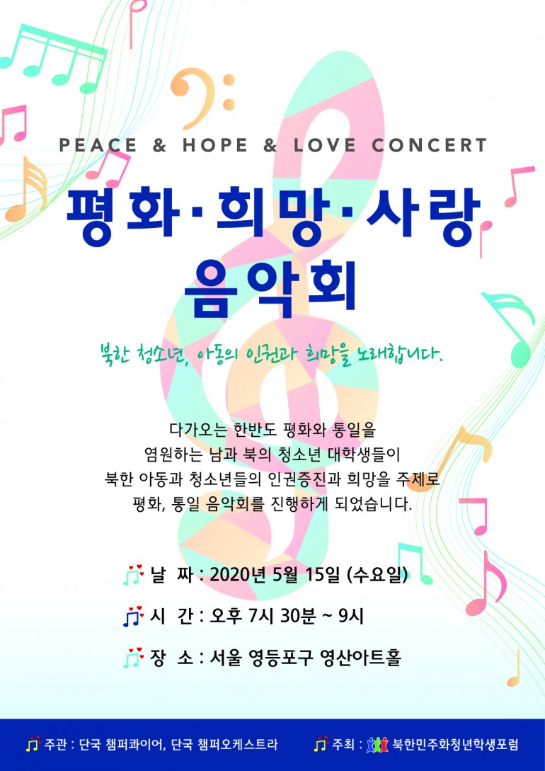 음악회 취지 : 다가오는 한반도의 평화와 통일을 염원하는 남과 북의 청소년,대학생들이 북한 아동과 청소년들의