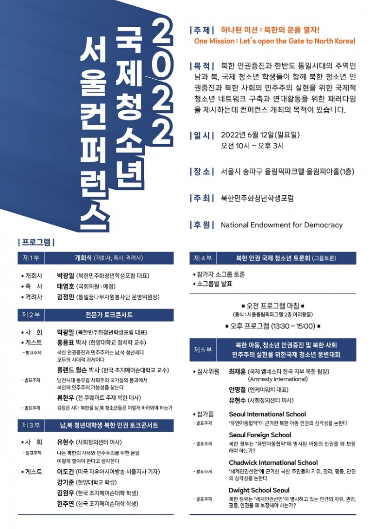 2022년 북한 인권과 민주주의를 위한 서울국제청소년 컨퍼런스 공지