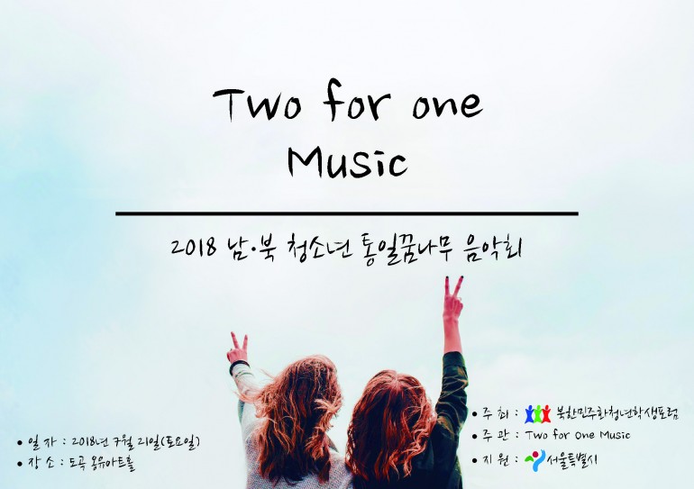 북한민주화청년학생포럼(대표 : 박광일)은 2018년 서울특별시 비영리민간단체 공익지원사업으로 2018 남,북 청소년 통일꿈나무 희망 음악회를 다음과 같이 개최하오니 많은 분들의 참여와 응원을 부탁드립니다.