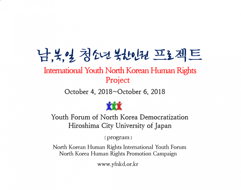 프로젝트 공동주최 : 북한민주화청년학생포럼, 일본 히로시마시립대학 평화연구소