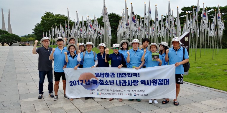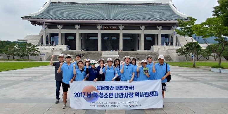 북한민주화청년학생포럼(대표 : 박광일)이 2017년 행정자치부 비영리민간단체 공익지원사업으로 조직한 남,북 청소년 나라사랑역사원정대는 2017년 7월 29일(금요일), 충청남도 천안시 동남구 목천읍에 위치한 독립기념관을 탐방하였습니다. 이번 남,북 청소년 나라사랑역사원정대 대원들은 독립기념관 탐방을 통하여 대한민국의 독립역사를 통하여 나라사랑의 마음을 새기고 다가오는 통일시대의 주인공이라는 자각을 가지고 청소년 통일운동을 위해 최선을 다할 다짐을 가지는 시간을 가졌습니다.