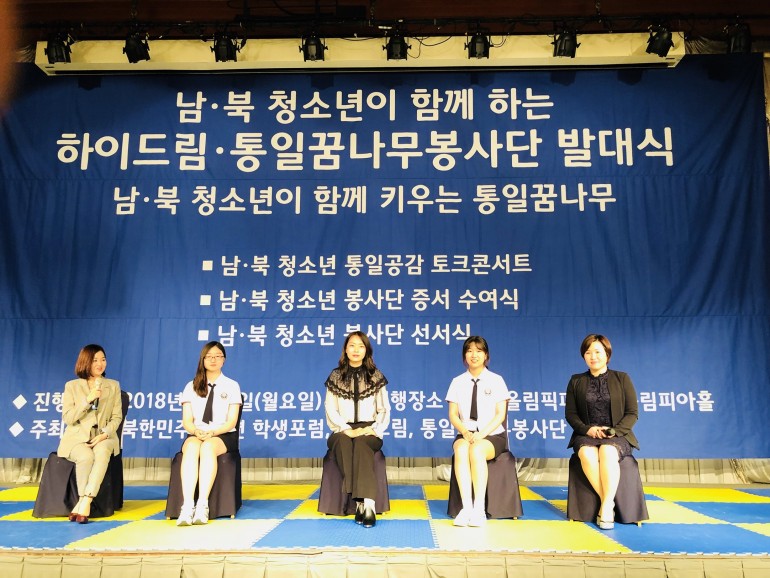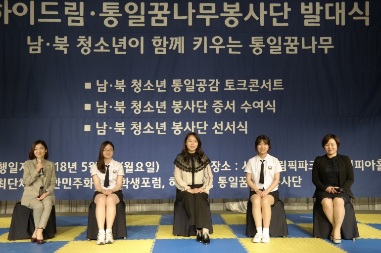 북한민주화청년학생포럼(대표 : 박광일)은 지난 2018년 5월 7일(월요일), 서울특별시 송파구 옹림픽파크텔에서 남,북 청소년 통일꿈나무봉사단 발대식을 진행했습니다. 이번 남,북 청소년 통일꿈나무봉사단 발대식에서는 남,북 청소년 통일공감토크콘서트가 진행되었습니다.