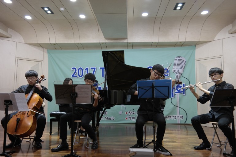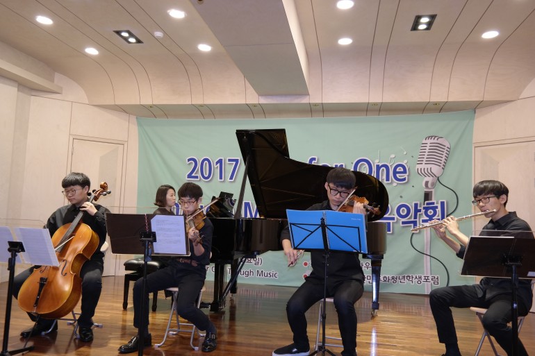 북한민주화청년학생포럼(대표 : 박광일)이 후원하고 본 단체 소속인 북한인권청소년예술연합동아리 'Two for One Through Music'이 주최한 2017 탈북 청소년 희망음악회가 2017년 7월 16일(일요일), 서울특별시 서초구 소재 슈필렌하우스 아트홀에서 개최되었습니다. 이번 2017 탈북 청소년 희망음악회는 본 단체 소속인 북한인권청소년예술연합동아리 'Two for One Through Music'이 주최하는 제6회 탈북 청소년 돕기 희망음악회였습니다. 이번 희망음악회는 중국 내 북한 탈북 청소년들을 돕기 위한 모금활동을 위한 예술재능기부형식의 청소년 음악회로 진행되었습니다.