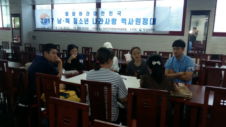 북한민주화청년학생포럼(대표 : 박광일)이 2017년 행정자치부 비영리민간단체 공익지원사업으로 조직한 남,북 청소년 나라사랑역사원정대는 2017년 7월 27일(목요일), 강원도 고성군에 위치한 고성통일전망대를 탐방하였습니다. 이번 남,북 청소년 나라사랑역사원정대 대원들은 고성통일전망대 탐방을 통하여 북한을 바라보며 미래 한반도 평화통일을 위한 청소년 통일운동의 선구자가 되겠다는 다짐을 가지는 시간을 가졌습니다. 강원도 고성통일전망대 탐방을 마친 남,북 청소년 나라사랑역사원정대 대원들은 한반도 평화통일과 청소년들의 역할을 주제로 조별 토론회 시간을 가졌습니다.