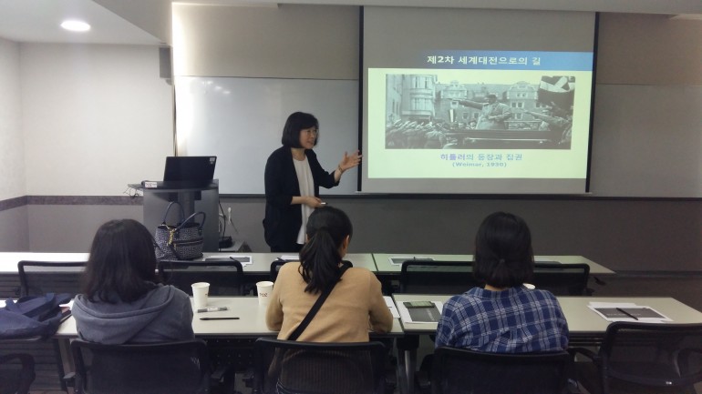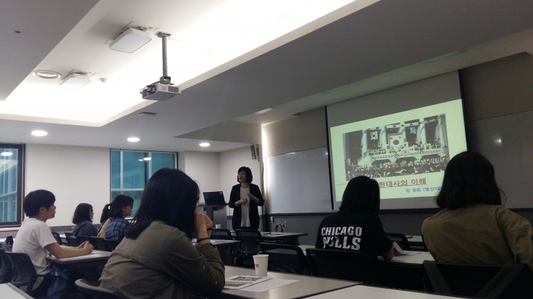 북한민주화청년학생포럼(대표 :박광일)은 2017년 5월 20일(토요일), 토즈 서울 강남2호점에서 남,북 청소년 나라사랑 역사아카데미 1강의를 진행하였습니다. 남,북 청소년 나라사랑 역사아카데미는 '응답하라 대한민국' 나라사랑 청소년 활동 프로그램으로 정경희 영산대학교 교수님을 모시고 '대한민국 역사 어떻게 볼 것인가'라는 주제로 진행되었습니다.