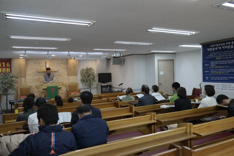 남북하나재단(이사장 : 손광주)이 지원하고 북한민주화청년학생포럼(대표 : 박광일)이 주최하는 북한이탈주민 사회정착을 위한 평생학습교실인 '착한동네' 프로그램으로 진행되는 '인생강좌' 7회 강의가 2016년 10월 9일(일요일), 서울특별시 송파구 거여동 소재 아름다운꿈의교회에서 진행되었습니다. '인생강좌' 7회 강의 강사로 나선 최창수 강사님은 대한민국에서 기아자동차 협력업체에서 근무하는 과정을 회고하면서 아무리 힘들어도 최선을 다하면 반드시 성공한다는 각오를 가지고 성공적인 사회정착을 위해 매진하자고 강조하셨습니다.