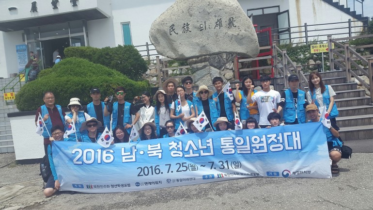 행정자치부가 지원하는 2016 비영리민간단체공익지원사업으로 북한민주화청년학생포럼(대표 : 박광일)이 진행하고 있는 2016 남,북 청소년 통일원정대 대원들이 2016년 7월 30일(토요일) 강원도 고성 통일전방대를 탐방하였습니다. 2016 남북 청소년 통일원정대 대원들은 북한의 금강산이 바라보이는 강원도 고성 통일전망대에 올라 미래 행복한 통일시대를 앞당겨 나갈 다짐을 다지며 함께 통일의 노래를 부르며 역사적인 2016 남북 청소년 통일원정대 일정을 마감하여습니다.