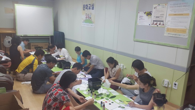 남북하나재단(이사장 : 손광주)이 지원하고 북한민주화청년학생포럼(대표 : 박광일)이 주최한 북한이탈주민 사회정착을 위한 평생학습교실인 '착한동네' 프로그램으로 진행되는 '문화교실' 5회 강의가 2016년 8월 11일(일요일), 서울특별시 송파구 거여동 소재 아름다운꿈의교회에서 진행되었습니다. '문화교실' 5강의는 임선영 포크아트 전문강사님과 북한이탈주민들이 함께 하는 티셔츠그리기교실이 진행되었습니다. 이번 문화교실 5강의에는 서울특별시 송파구 거여동 거주 북한이탈주민 25여명이 참가하여 노래하는데 필요한 발송법, 악보보기, 노래하기 등 귀한 시간을 가졌습니다.