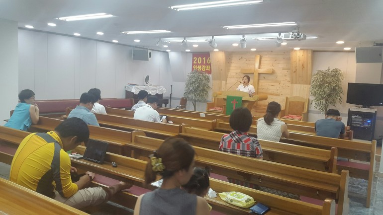 남북하나재단(이사장 : 손광주)이 지원하고 북한민주화청년학생포럼(대표 : 박광일)이 주최하는 북한이탈주민 사회정착을 위한 평생학습교실인 '착한동네' 프로그램으로 진행되는 '인생강좌' 5회 강의가 2016년 8월 7일(일요일), 서울특별시 송파구 거여동 소재 아름다운꿈의교회에서 진행되었습니다. '인생강좌' 5회 강의 강사로 나선 김광옥 통일교육강사는 북한이탈주민들이 대한민국 사회에서 착하게 정착하는 길이 미래 행복한 통일에 이바지하는 길이며 북한에 남아있는 부모, 형제들에게 보답하는 길임을 명심하고 아무리 어려워도 힘있게 희망을 가지고 살아가자고 호소했습니다.