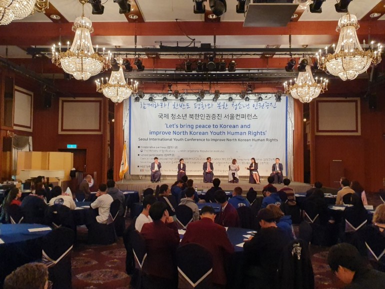 북한민주화청년학생포럼(대표 : 박광일)은 지난 2019년 10월 27일(일요일), 서울 송파구 올림픽파크텔 올림피아홀에서 '함께 하라 한반도 평화와 북한 청소년 인권증진'의 주제로 국제 청소년 서울 컨퍼런스를 개최하였습니다. 이번 컨퍼런스에는 대원외국어고등학교, 보인고등학교, 양정고등학교, 서울국제학교(sis), 프랑스 생조세프로키디 중,고등학교 학생들과 북한 탈북 청소년 등 국 내,외 청소년 150명이 참가하였습니다. 컨퍼런스에서는 북한민주화청년학생포럼 박광일 대표의 사회로 북한 탈북 청소년들의 토크콘서트 '우리의 통일, 인권을 이야기 한다'가 진행되었습니다.