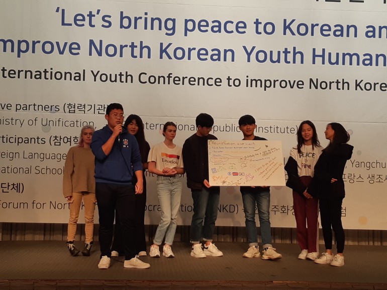 북한민주화청년학생포럼(대표 : 박광일)은 지난 2019년 10월 27일(일요일), 서울 송파구 올림픽파크텔 올림피아홀에서 '함께 하라 한반도 평화와 북한 청소년 인권증진'의 주제로 국제 청소년 서울 컨퍼런스를 개최하였습니다. 이번 컨퍼런스에는 대원외국어고등학교, 보인고등학교, 양정고등학교, 서울국제학교(sis), 프랑스 생조세프로키디 중,고등학교 학생들과 북한 탈북 청소년 등 국 내,외 청소년 150명이 참가하였습니다. 컨퍼런스에서는 한반도 평화와 통일, 북한 청소년 인권 증진을 위한 국제 청소년 연대활동과 네트워크 구측을 위한 전략과 대안을 발표하는 시간을 가졌습니다.