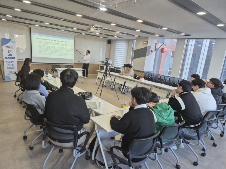 남,북 청년대학생 민주주의 리더십아카데미 3기 16강의 페이지 정보 작성자 북한민주화 작성일25-04-07 10:06 조회343회 댓글0건 관련링크 이전글 다음글 목록 본문 북한민주화청년학생포럼(대표 : 박광일)은 지난 2025년 3월 22일(토요일), 한양대학교 모춘흥 교수님을 모시고 '우리는 변하는 북한사회를 어떻게 보아야 하는가?'라는 주제로 남,북 청년대학생 민주주의 리더십아카데미를 진행했습니다. 댓글목록 등록된 댓글이 없습니다. 이전글 다음글 목록
