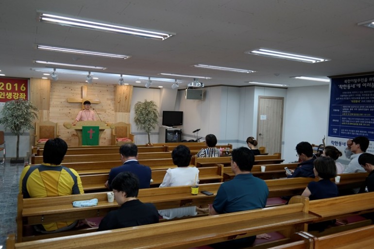 남북하나재단(이사장 : 손광주)이 지원하고 북한민주화청년학생포럼(대표 : 박광일)이 주최하는 북한이탈주민 사회정착을 위한 평생학습교실인 '착한동네' 프로그램으로 진행되는 '인생강좌' 6회 강의가 2016년 9월 4일(일요일), 서울특별시 송파구 거여동 소재 아름다운꿈의교회에서 진행되었습니다. '인생강좌' 6회 강의 강사로 나선 최명진 강사님은 대한민국에서 한양대학교 과정과 중국 칭하대학 교환학생 시절, 외국계회사인 루마썬팅 본사에 입사하여 부장까지의 진급과정을 회고하고 통일을 위한 북한이탈주민들의 성공적인 사회정착의 중요성을 강조하셨습니다.