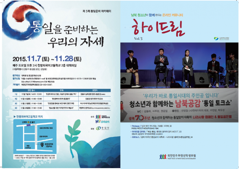 북한민주화청년학생포럼(대표 : 박광일)은 미래 행복한 통일시대의 주인공들인 우리 청소년들에게 통일에 대한 새로운 비전을 심어주기 위하여 하이드림 청소년 기자단 활동으로 잡지 제2호를 발간하게 되었습니다.