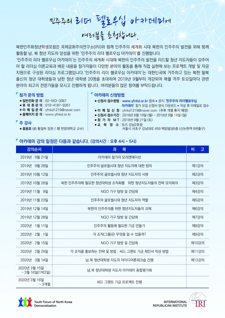 민주주의 리더 펠로우십 아카데미 참가지 모집 공고