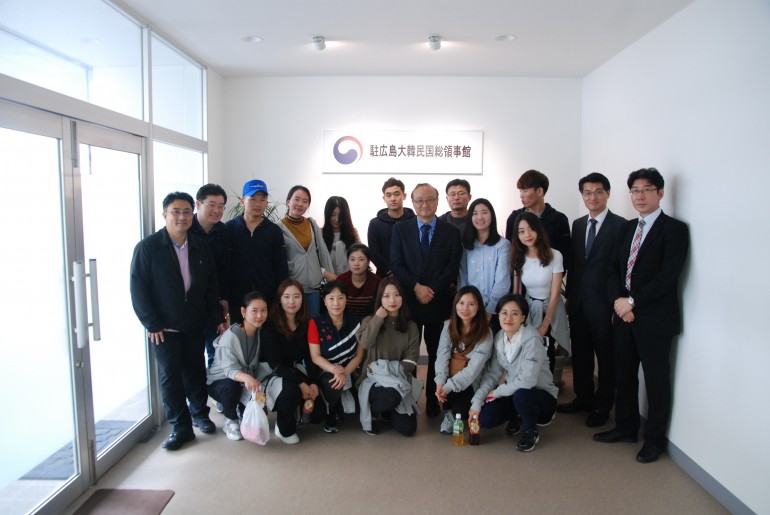 북한민주화청년학생포럼(대표 : 박광일)과 일본 히로시마시립대학 평화연구소(소장 : 키타와 켄)가 공동으로 개최하는 '응답하라 북한인권, 남,북,일 청소년 북한인권 프로젝트' 참가자들이 지난 2018년 10월 5일(금요일), 일본 히로시마 주재 대한민국 총영사관을 방문하였습니다. 이번 방문에서 참가자들은 대한민국 총영사님을 비롯하여 관계자분들의 환영속에서 일본 히로시마의 역사와 재일한국인들의 역사, 1945년 8월 6일, 히로시마원폭피해와 재일한국인 희생자 상황, 한반도 평화통일을 위한 총영사관의 대외활동을 청취하면서 다가오는 한반도 평화통일을 위한 청소년들의 역할을 다시금 되새기는 시간을 가졌습니다. 이번 일본 히로시마 주재 대한민국 총영사관 방문을 허락해주신 모든 관계자분들께 진심으로 감사를 드립니다.
