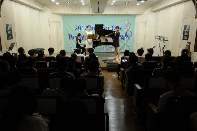 북한민주화청년학생포럼(대표 : 박광일)이 후원하고 본 단체 소속인 북한인권청소년예술연합동아리 'Two for One Through Music'이 주최한 2017 탈북 청소년 희망음악회가 2017년 7월 16일(일요일), 서울특별시 서초구 소재 슈필렌하우스 아트홀에서 개최되었습니다. 이번 2017 탈북 청소년 희망음악회는 본 단체 소속인 북한인권청소년예술연합동아리 'Two for One Through Music'이 주최하는 제6회 탈북 청소년 돕기 희망음악회였습니다. 이번 희망음악회는 중국 내 북한 탈북 청소년들을 돕기 위한 모금활동을 위한 예술재능기부형식의 청소년 음악회로 진행되었습니다.