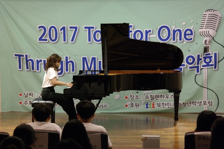 북한민주화청년학생포럼(대표 : 박광일)이 후원하고 본 단체 소속인 북한인권청소년예술연합동아리 'Two for One Through Music'이 주최한 2017 탈북 청소년 희망음악회가 2017년 7월 16일(일요일), 서울특별시 서초구 소재 슈필렌하우스 아트홀에서 개최되었습니다. 이번 2017 탈북 청소년 희망음악회는 본 단체 소속인 북한인권청소년예술연합동아리 'Two for One Through Music'이 주최하는 제6회 탈북 청소년 돕기 희망음악회였습니다. 이번 희망음악회는 중국 내 북한 탈북 청소년들을 돕기 위한 모금활동을 위한 예술재능기부형식의 청소년 음악회로 진행되었습니다.