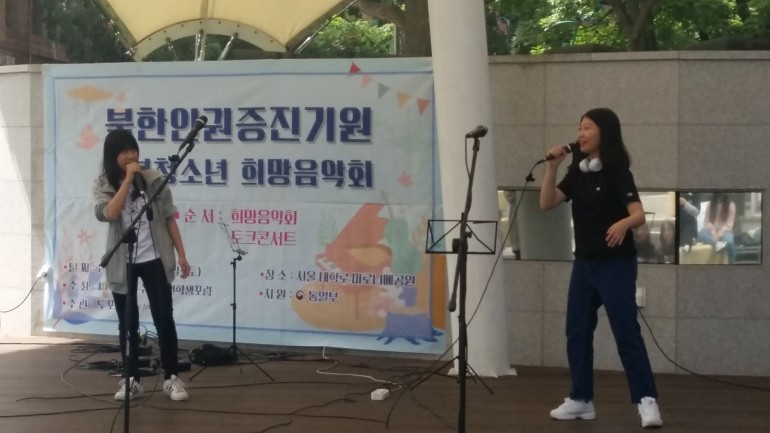 북한민주화청년학생포럼(대표 : 박광일)은 투포원과 함께 2017년 6월 10일(통일), 서울 대학로 마로니에공연 야외공연장에서 '통일의 빛, 희망의 빛이 되겠습니다'라는 주제로 북한인권증진기원 남,북 청소년 희마음악회롤 개최했습니다. 이번 희망음악회는 20개 서울시내 고등학교 예술동아리가 참가하여 북한인권증진을 기원하는 마음으로 희망음악회를 개최하였습니다.