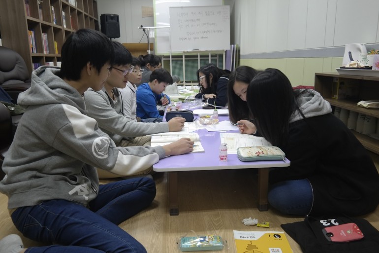 북한민주화청년학생포럼(대표 : 박광일) 소속 대원외국어고등학교 도아리 투포원 학생들은 서울특별시 송파구 거여동에 거주하고 있는 북한이탈주민 청소년 방과후 공부방 자원봉사활동을 진행하였습니다.