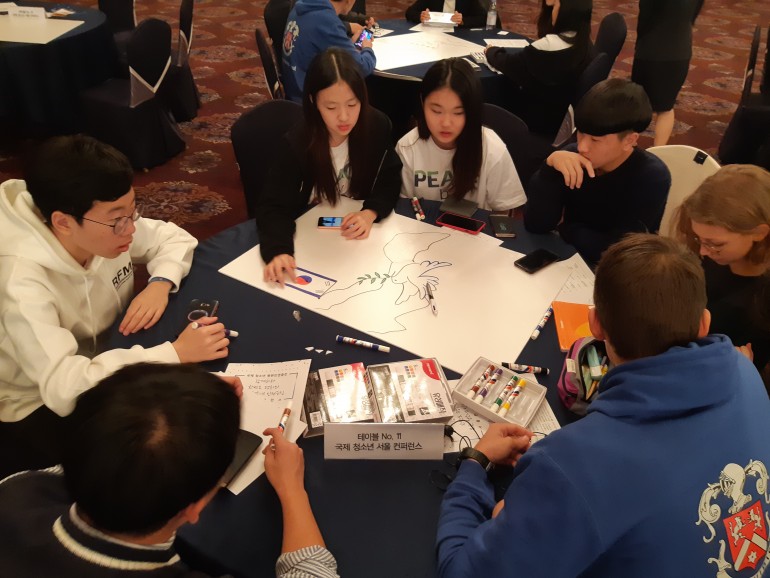 북한민주화청년학생포럼(대표 : 박광일)은 지난 2019년 10월 27일(일요일), 서울 송파구 올림픽파크텔 올림피아홀에서 '함께 하라 한반도 평화와 북한 청소년 인권증진'의 주제로 국제 청소년 서울 컨퍼런스를 개최하였습니다. 이번 컨퍼런스에는 대원외국어고등학교, 보인고등학교, 양정고등학교, 서울국제학교(sis), 프랑스 생조세프로키디 중,고등학교 학생들과 북한 탈북 청소년 등 국 내,외 청소년 150명이 참가하였습니다. 컨퍼런스에서는 한반도 평화와 통일, 북한 청소년 인권 증진을 위한 국제 청소년 연대활동과 네트워크 구측을 위한 조 별 원탁회의가 진행되었습니다..